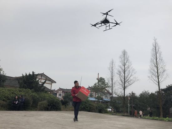 送货的无人机。钟欣 摄