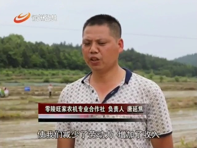 “农机局给我们带来了先进的设备,使我们减少了劳动力,增加了收入”零陵旺家农机专业合作社负责人唐延焦对着镜头满意的说道。