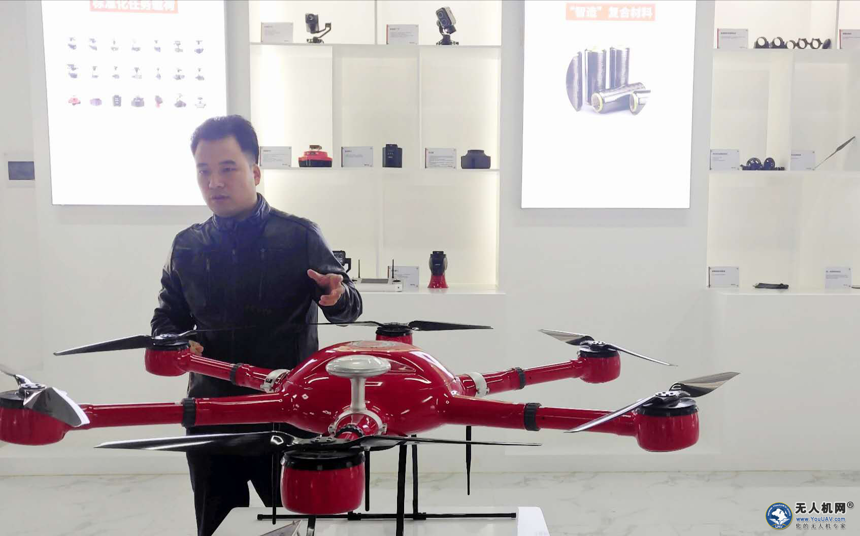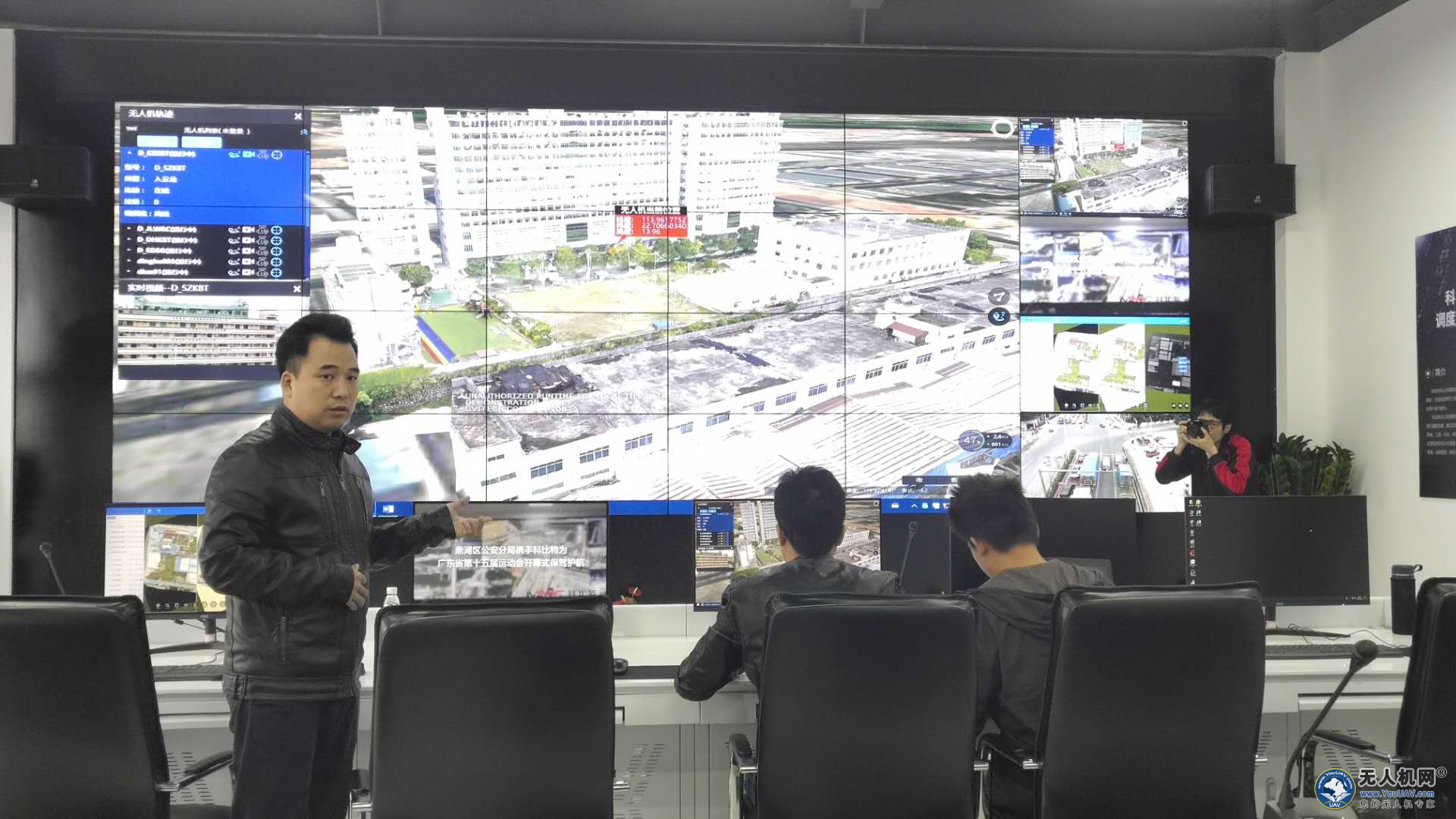 卢总为媒体朋友介绍公司无人机调度平台