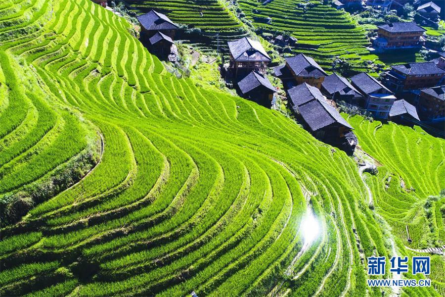 夏日,绿油油的禾苗随风翻卷出道道绿波。新华网发 潘志祥摄