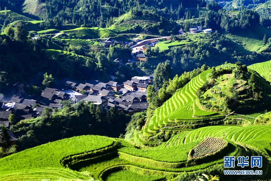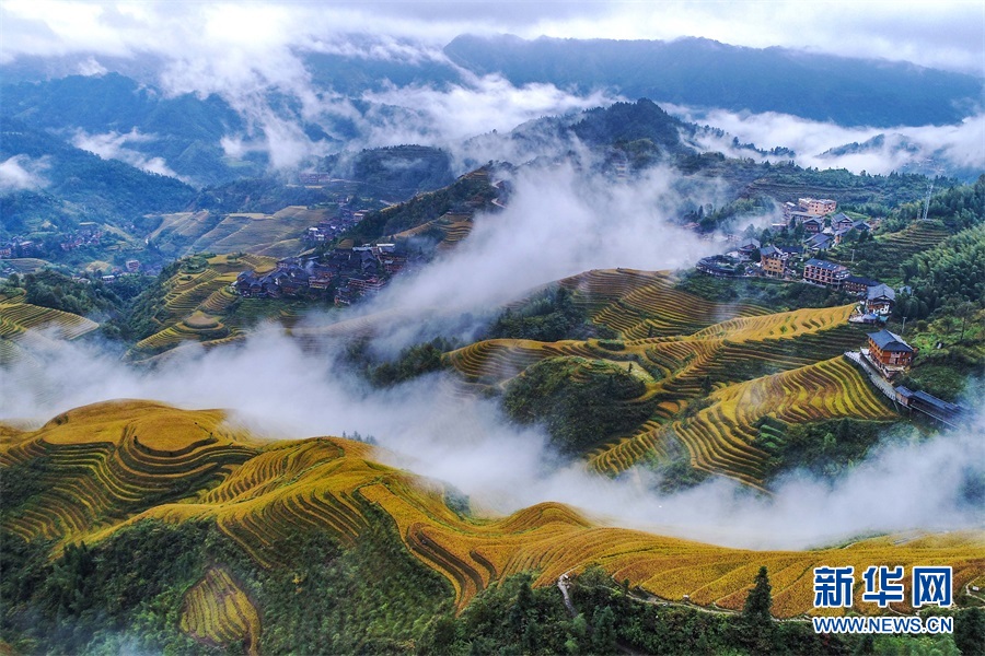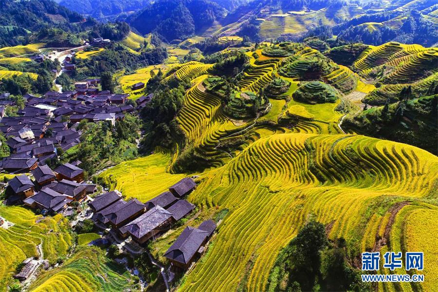 金秋,漫山铺金,层层梯田若级级金阶。新华网发 潘志祥摄