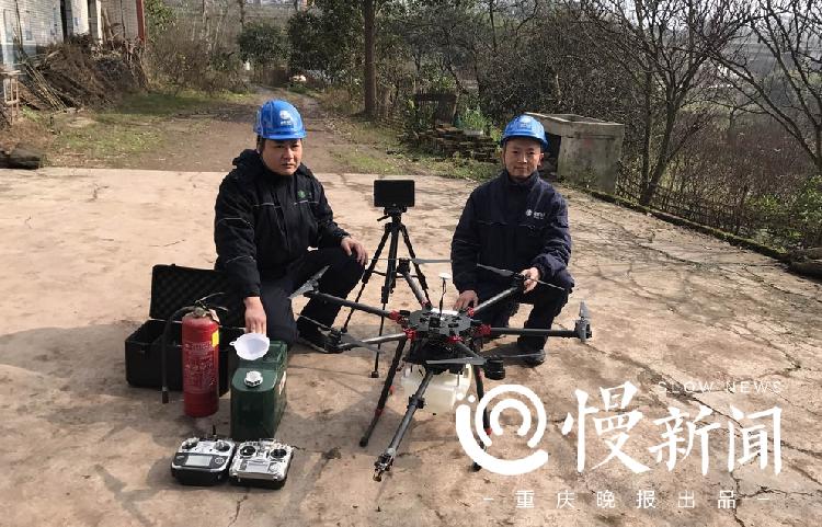 由于马蜂窝对周边居民有威胁,且任由其发展壮大,也会危及电网安全。上午11点许,永川供电公司无人机班副班长何涛和巡检工程师晏新来到此地,将对该马蜂窝实施剿灭。