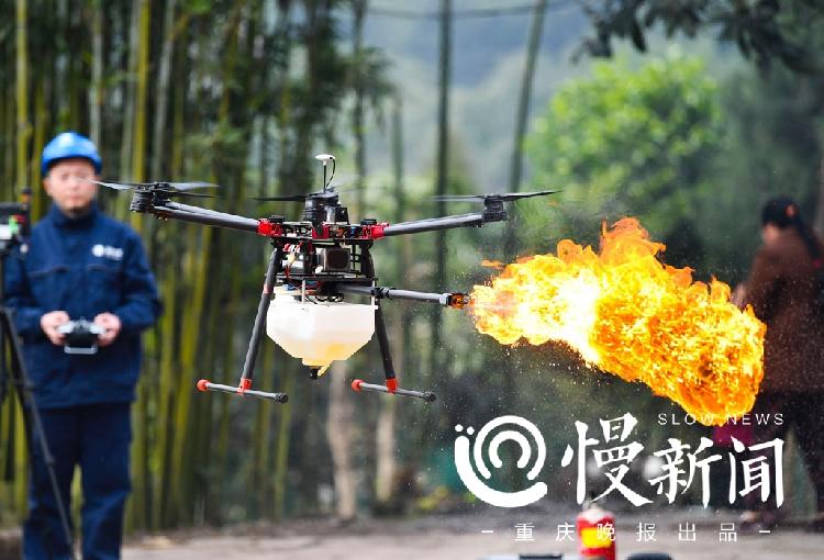 在国网重庆市电力公司永川供电公司无人机班,电力工人手中的无人机既是巡检的工具,更是作战的武器。今天(16日),电力工人何涛和晏新就给当地百姓露了一手绝活——无人机喷火剿灭马蜂窝。