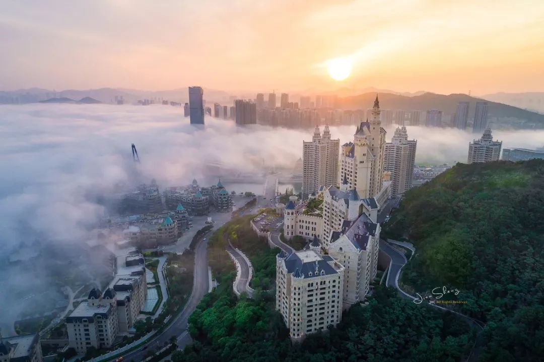 建议飞行时间:春夏交接时由于海上的暖湿气流遇到较冷的陆地会产生平流雾现象,莲花山便是拍摄点之一。