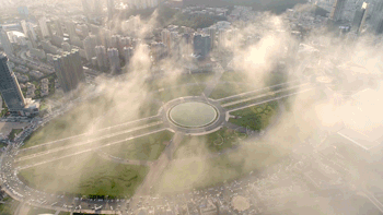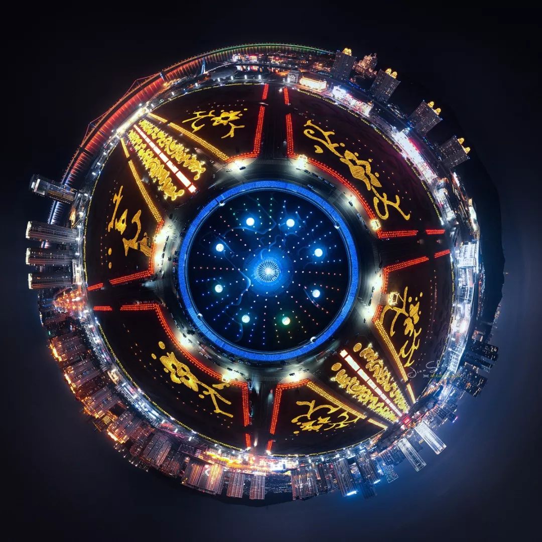从广场中心起飞,利用 “御”Mavic Air的一键小星球功能,拍出的“大眼睛”效果