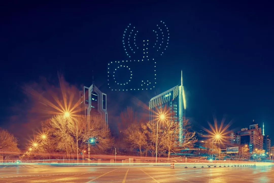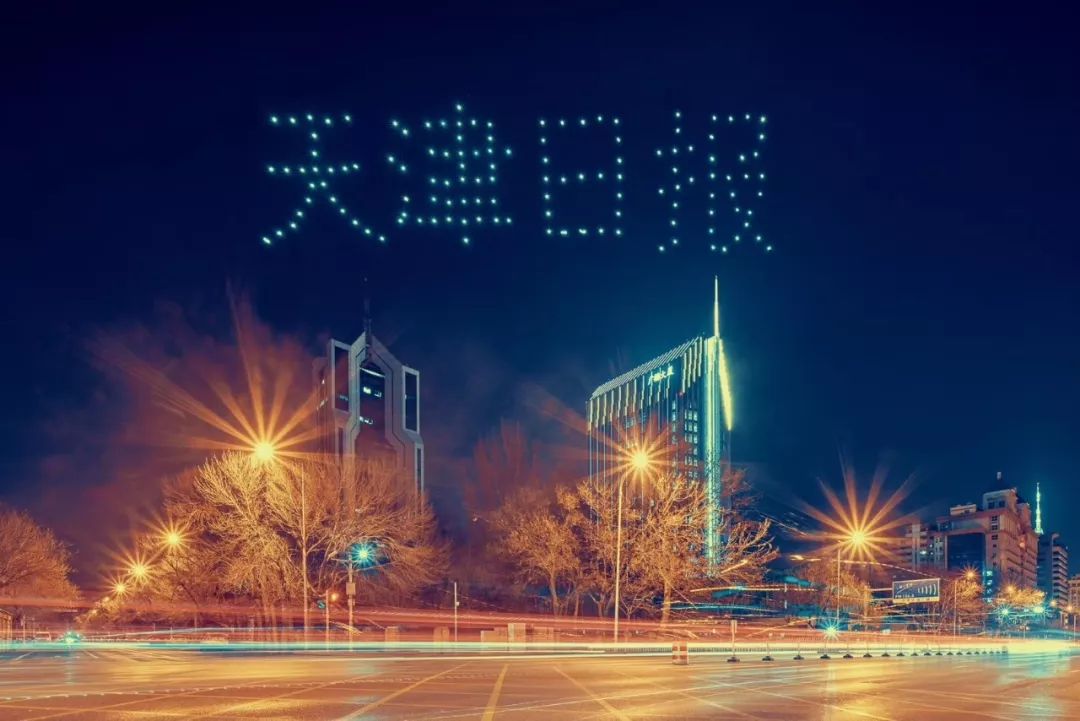 这次以“纪念天津日报、天津人民广播事业创立70周年”为主题的无人机灯光秀,由天津海河传媒中心与一飞智控(天津)科技有限公司联手为天津市民创意奉献。