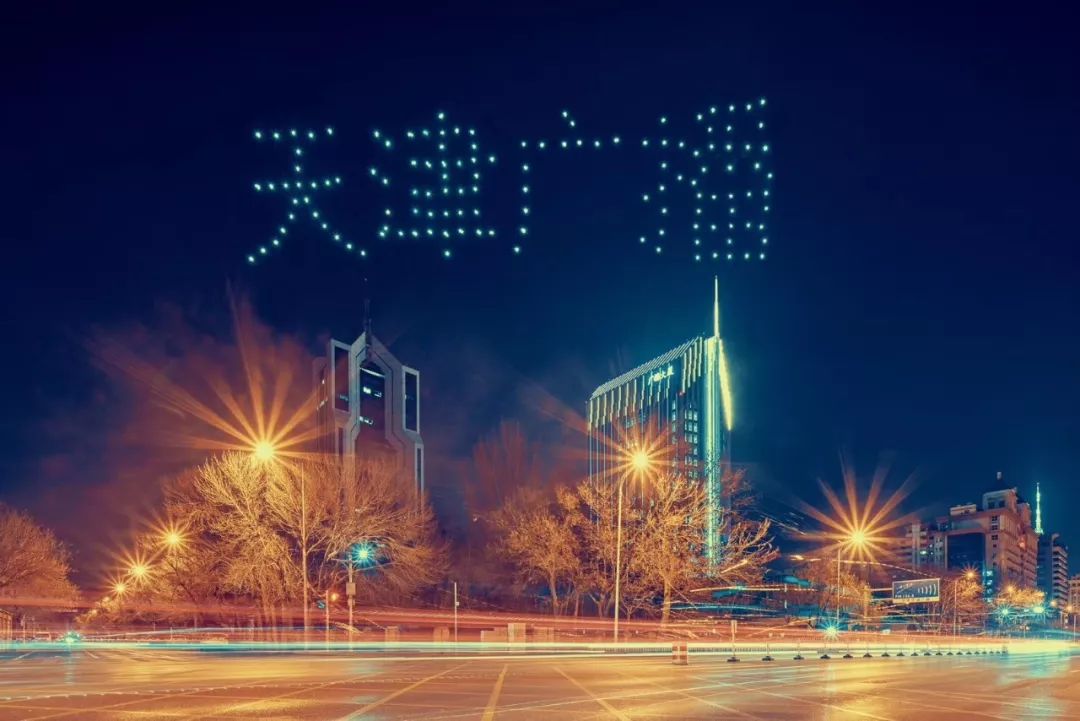 在这场长达8分钟的视觉大片里,无人机用酷炫的科技礼花,将天津广播、天津日报70年的故事娓娓道来,美轮美奂的表演,惊艳了城市夜空。