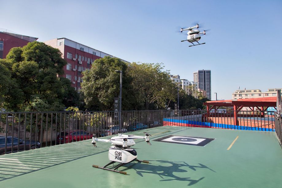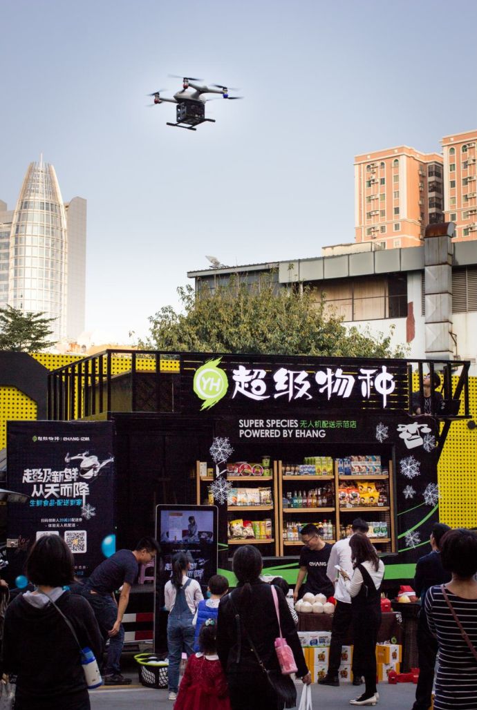 2018年6月8日,国内第一条正式获批的常态化无人机物流配送航线在广州启动商业化运营。广州亿航智能集团与永辉超市合作建立的全国首家无人机配送体验店开始为天河区中山大道漫广场周边四个社区近6千位居民展开生鲜商品配送服务。经本土化运营商全年超过3万架次的零故障飞行,电商产品在广州已实现9公里半径内15至20分钟送达,节约传统人力配送时间40%-60%以上。因广州市率先在无人机飞行上全程采用人工智能与航空调度中心融合的方式进行,引起新华社,人民日报、央视《经济新闻联播》和美国《彭博商业周刊》对广州的大量报道,获得国内与国际社会广泛赞誉与关注,一举奠定广州在无人机科技与人工智能技术上的世界级领先地位。