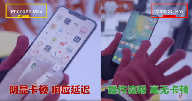 其实也别怪我嘲笑苹果,iPhone不经冻的事实也是大家有目共睹的。此前看过一个Vloger拍摄的华为Mate20 Pro和iPhone Xs Max抗寒能力测试的视频,在零下30℃的波蒂尼亚湾,Mate20 Pro无论是日常使用还是拍照、录视频,都与常规无异,十分流畅。反观iPhone XS Max,菜单滑动有拖影,拍照有延迟,录视频又十分卡顿。其实别说在北欧了,就是在冬天的北京,iPhone被冻关机的例子也不在少数了吧。