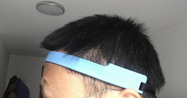 控制头带,也就是接收我们脑电波的装置,可以看到内侧有几个金属点,这就是检测我们脑电波的传感器。