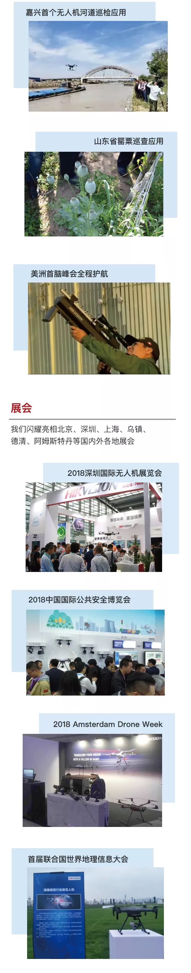 行业级无人机:依托视音频领域的强大技术积累,立足安防,专注公安、交通、司法、能源、文教卫、楼宇等各类行业,应用于立体监控、智能巡检、火点探测、应急救灾等多类场景。支持三轴云台高清防抖拍摄及十公里快速图传,可与众多第三方平台无缝对接。通过应用不同挂载,支持4K超高清视频画质、热成像实时测温等定制化功能。