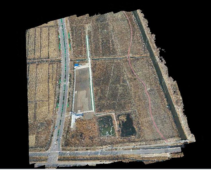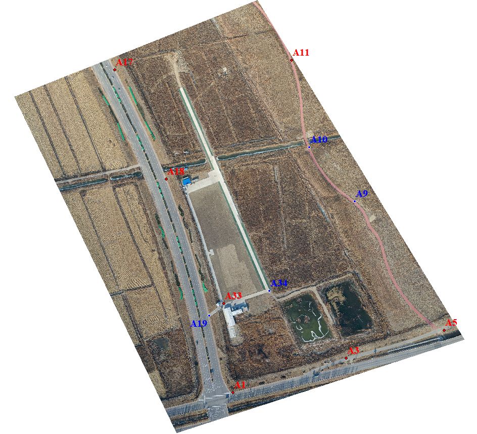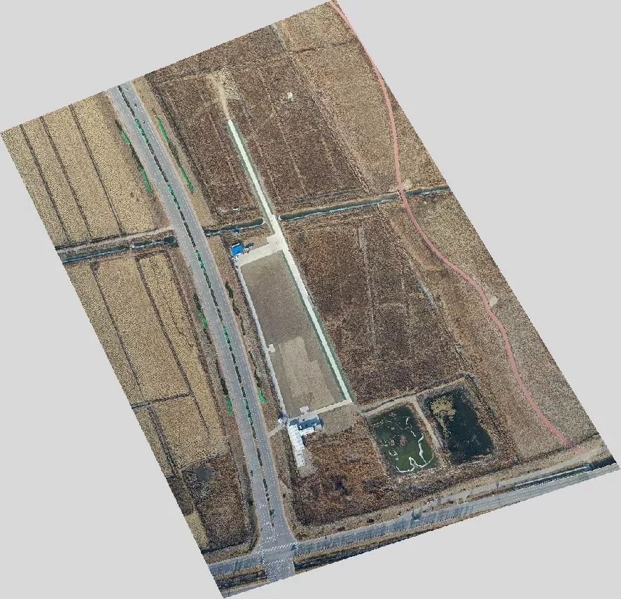 为验证基于D1000(基于Mavic2Pro)采集的数据能否满足大比例尺测图需求,我们进行了实飞及数据处理测试,实验选在天津宝坻无人机综合验证场,测区约0.32平方千米,地形起伏较小,场地内布设有固定靶标,可用于精度验证。