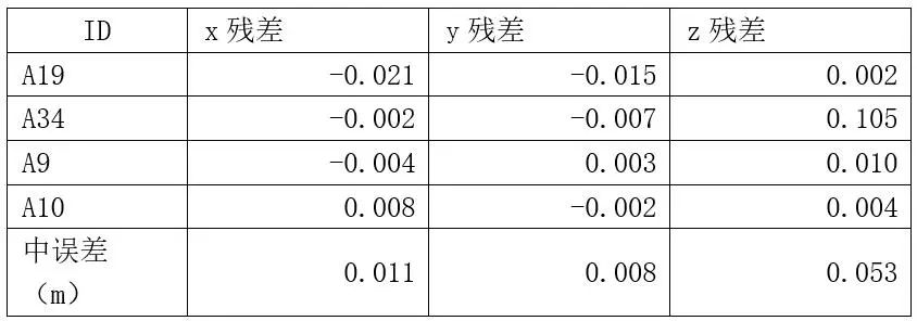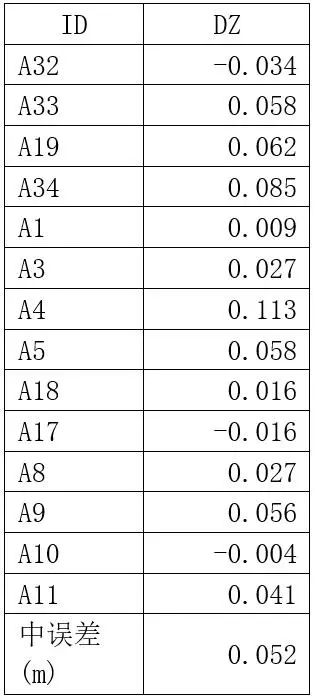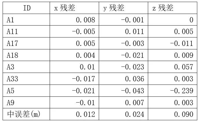 控制点x方向中误差为0.012m,y方向中误差为0.024m,z方向中误差为0.090m;