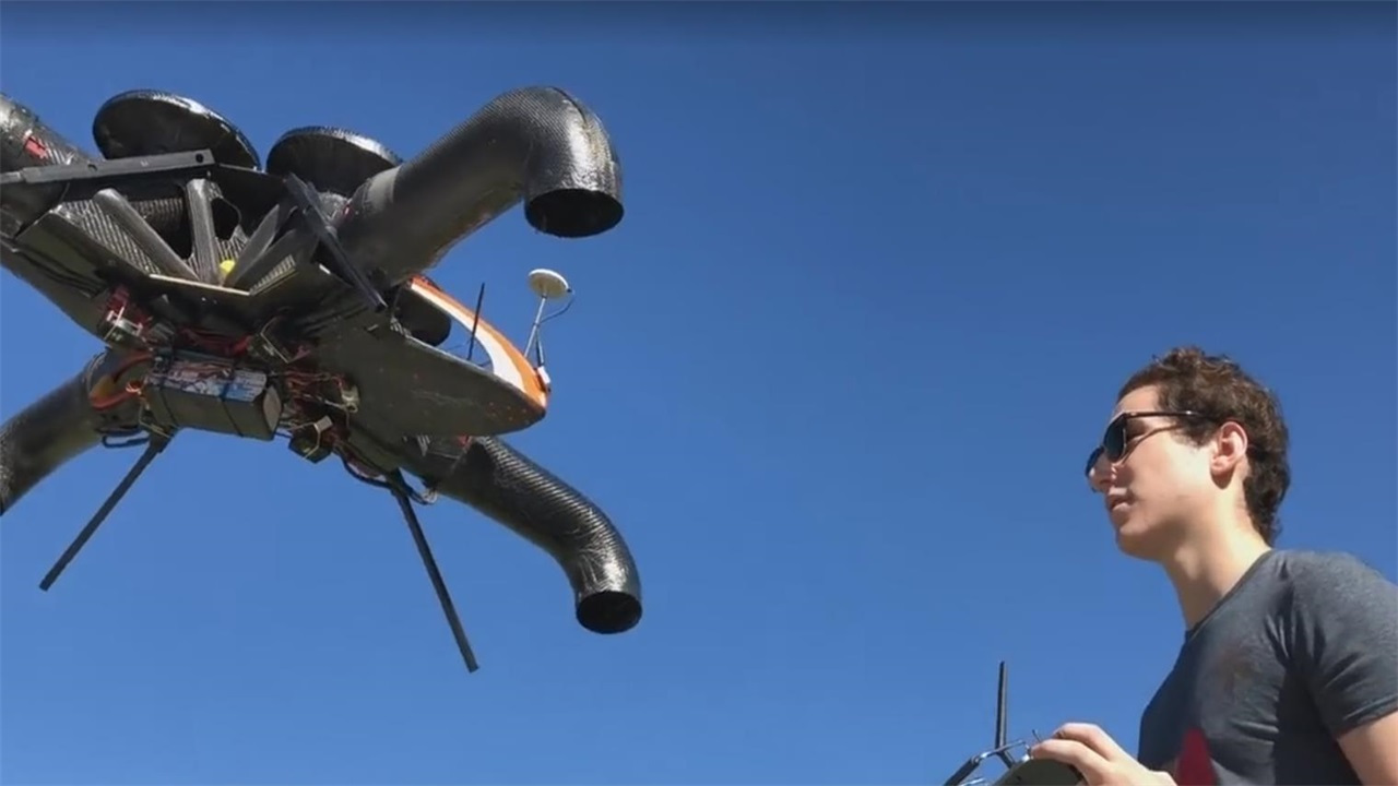 不过这位高中生考虑到安全性,所以整个管道都才用轻质木材打造而成,并且在外边包裹了一层更加轻便的,碳纤维材质。以保整个无人机的重量在可控的范围内。