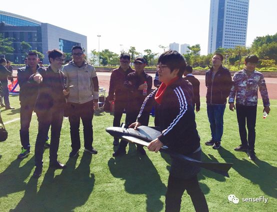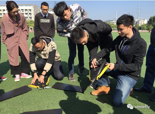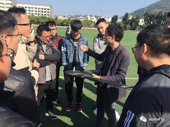 只见厦门理工学院的操场上聚集了几十人,他们兴奋地在体验试飞eBee X无人机。而这个似大号纸飞机的senseFly eBee X在众人之间轻松传递,并且一不留意就被抛上天空,一会儿又自动降落在草坪上。虽然此时学校已经放假,但这些人的举动依旧吸引了不少的驻足围观,眼尖的学生还发现这里面竟然还有厦门理工学院测绘工程系主任何原荣教授。
