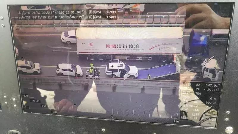 CW-30D监控事故现场,飞机飞行高度离地500m,图片为30倍光学变焦的结果。(使用手机拍摄地面站屏幕)
