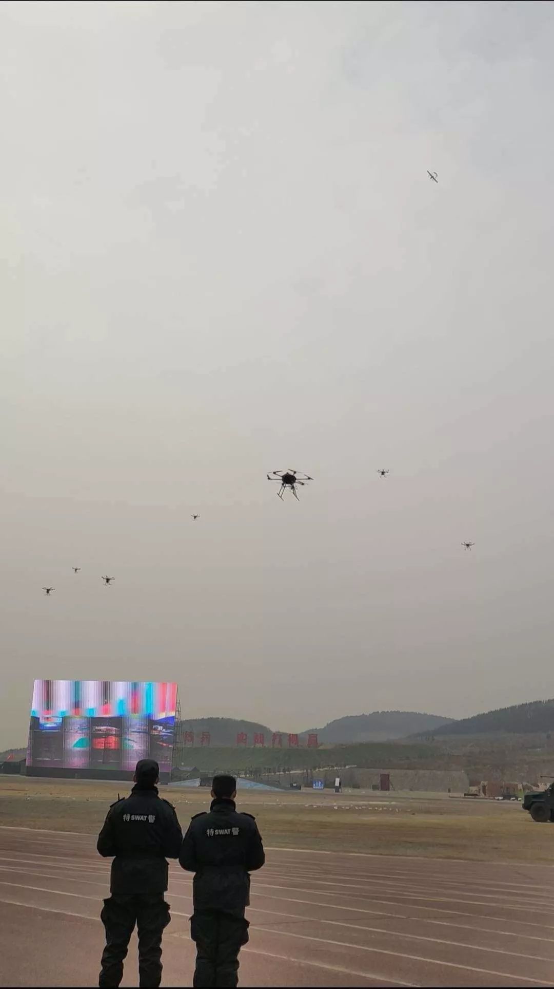 当天,CW-30D大鹏在空中盘旋监控会场,离会场高度400,盘旋的半径偏离会场600米。