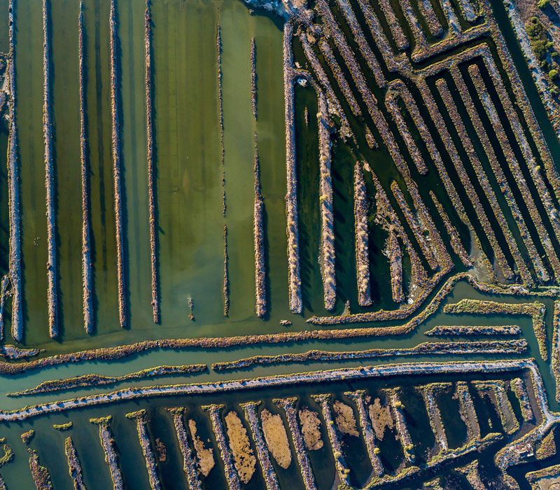 在这组图片中,拍摄团队首先展现了位于西班牙北部科鲁纳附近贝坦佐斯河口末端的盐沼。