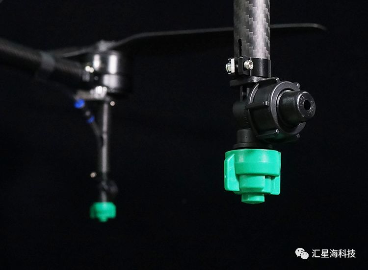 THEA-140共有4个喷头,均布置在旋翼下方,保证旋翼产生的向下气流助力药物下沉,减少漂移,更好的作用于植物,发挥药效。THEA-140喷头与机臂的连接处可灵活转动,可以更好的保护喷头装置,减少坠机损失。