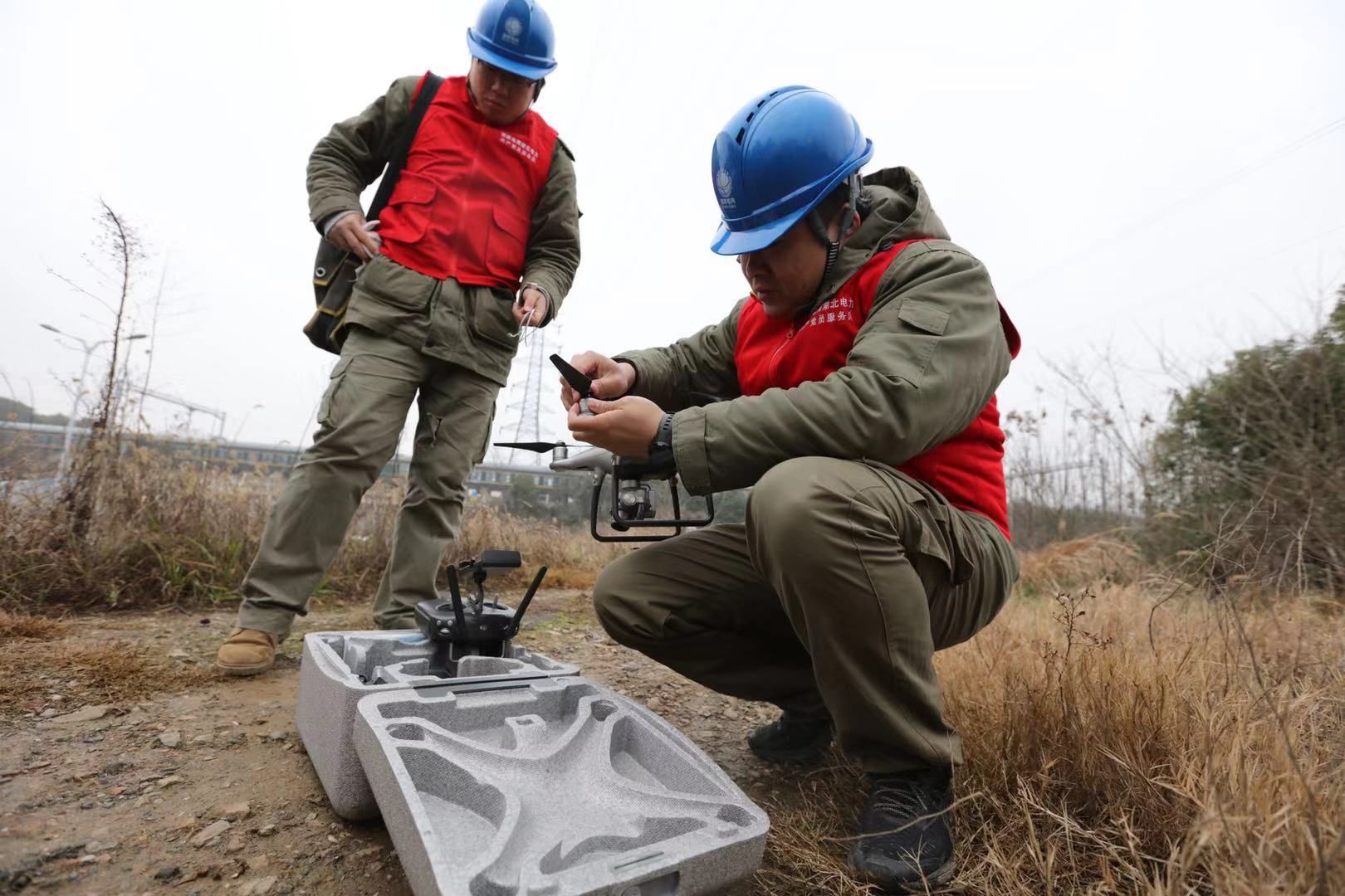 随着一阵“嗡嗡”的轰鸣声,无人机腾地飞起。巡线人员马驰用无人机对铁塔、导线进行近距离的检查。在手持的操作屏上,马驰发现铁塔上有一个螺帽的位置相对突出。“这个螺帽可能松动了,最好上去检查一下。”马驰手指着铁塔,对王焕说。