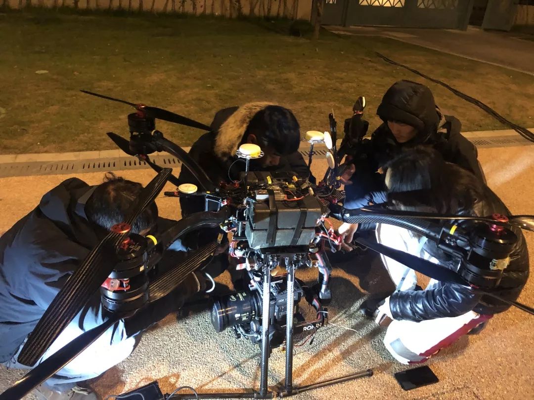 不过,转场到上海城市拍摄之后就像显得正常多了。 虽然都是夜景, 但相对来说简单不少,跟以往的拍摄手法差不多,演员,跟车,或者在上海宜家那场戏,都是使用无人机 Z1 挂载 RED 8K 摄影机航拍。
