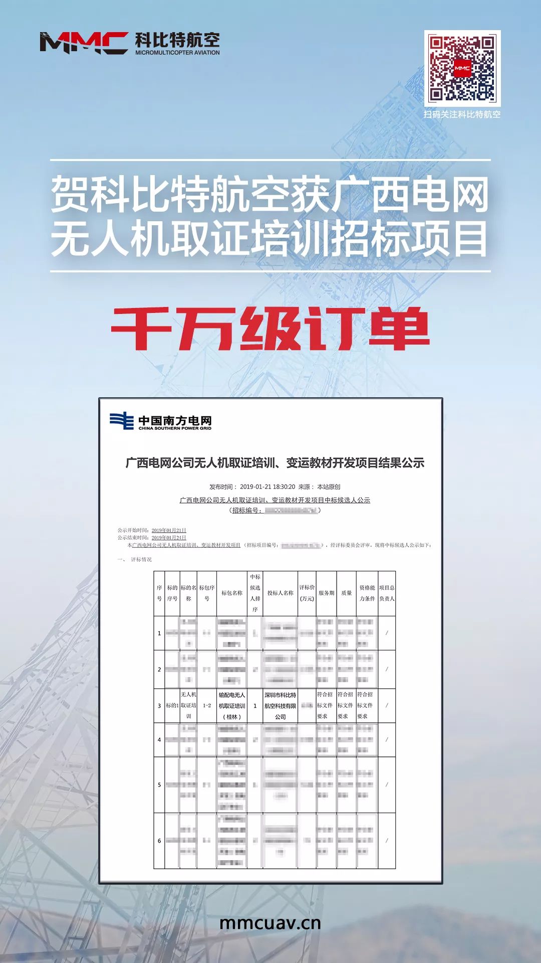 近期,科比特航空凭借自身强大的研发实力及培训能力,获得广西电网无人机取证培训千万级订单。