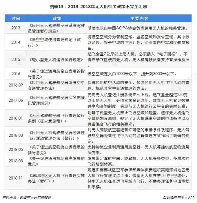 面对无人机的广阔前景,政府陆续出台了多项政策支持、规范无人机产业发展,例如鼓励大力发展物流无人机、无人配送等。预计2019年无人机各项相关政策将进一步落地实施,且政策将更为细化、具有针对性,支持力度也有望再度加大。
