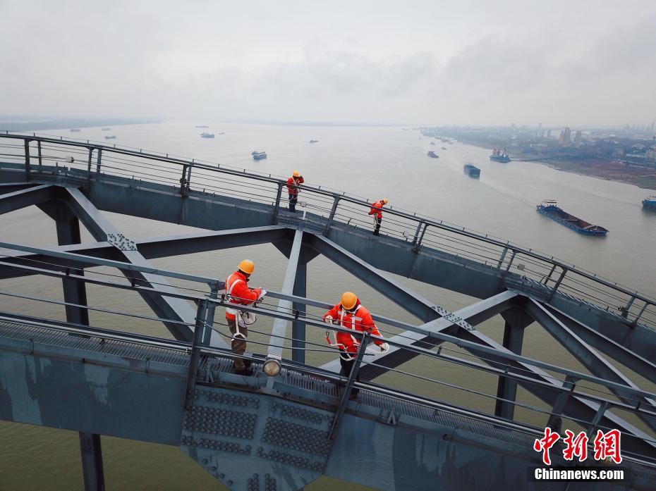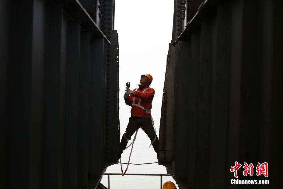 九江长江大桥是京九线上的“咽喉”,春运期间,列车行车密度大,九江桥工段大桥检查班负责对大桥设备进行“诊断把脉”,及时发现设备病害,为维修与大修提供真实有效的资料和数据。 丁波 摄