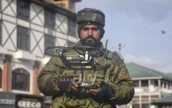 印度士兵操作的大疆精灵4