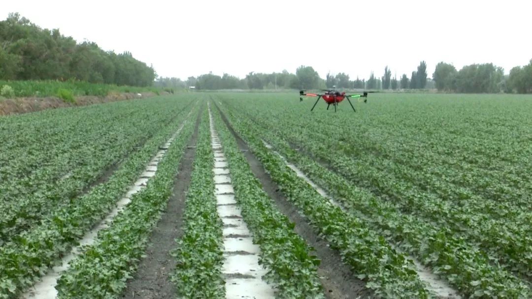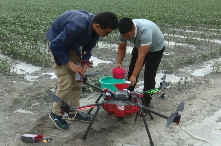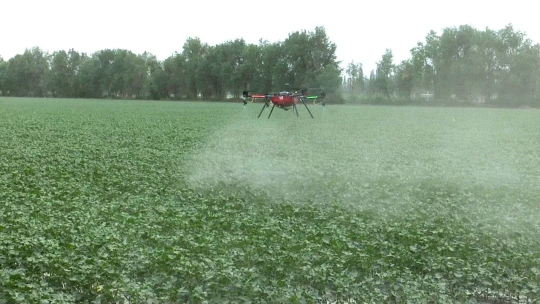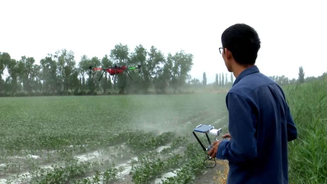 新疆铁航创飞航空科技有限公司总经理安英民表示:“无人机打药有四个优势,首先无人机作业不压苗;其次能达到统防统治、绿色防控的效果;三是能降低人工成本,降低生产养护成本;四是能达到增收增产的效果。”