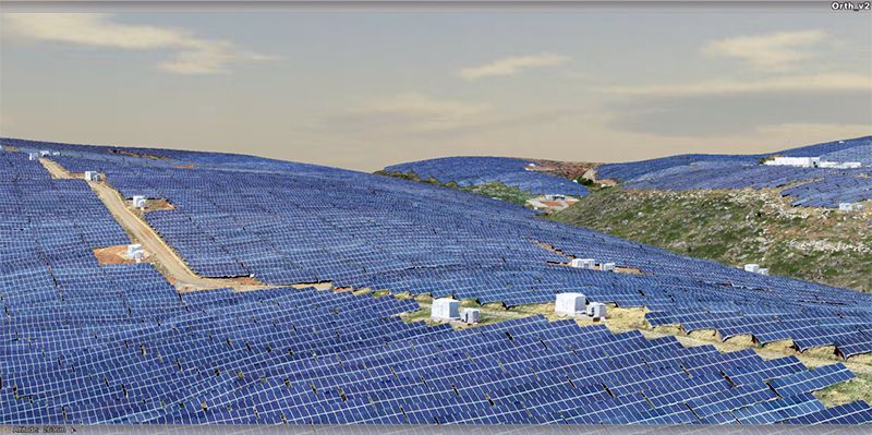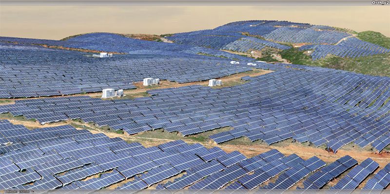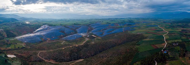 抵达电站时已经下午18点左右了,趁着还有点天光,我们用大疆精灵4P先侦察了一下地形。占地面积真不是盖的,1期和2期装机容量就是100MW,请看下图自行脑补。