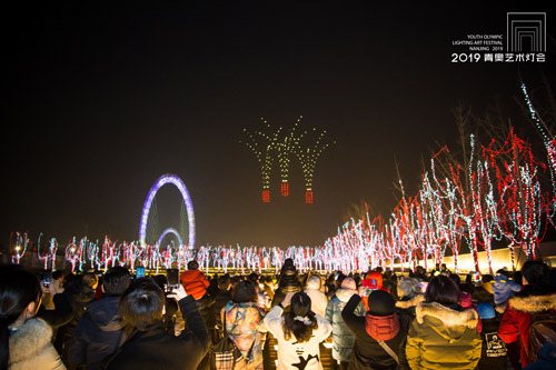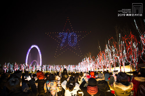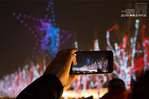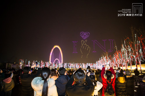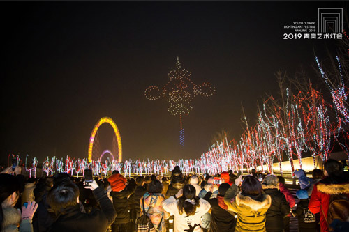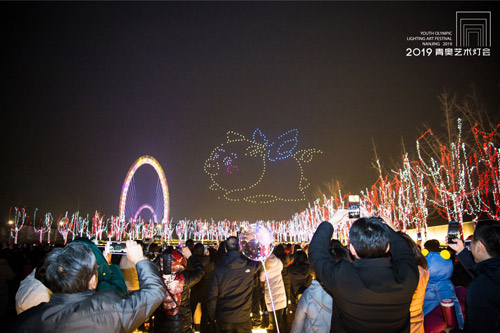 自1月28日2019青奥艺术灯会开幕以来,无人机表演受到广大市民朋友们的追捧与喜爱。凤凰网江苏获悉,当晚,全新编排的“新年”主题吸引两万多名游客前来观看。为满足市民朋友们的期盼,灯会组委会还将于2月24日晚间增加一场无人机表演。