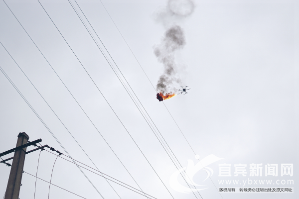 考虑到110kV沙坪西线暂未带电,经商量,运检四班无人机裴山山等作业人员决定利用无人机喷火技术消除线路隐患。此技术是该公司无人机作业训练的重点科目,可确保设备安全,但应用在线路巡视及消缺实践尚属首例。