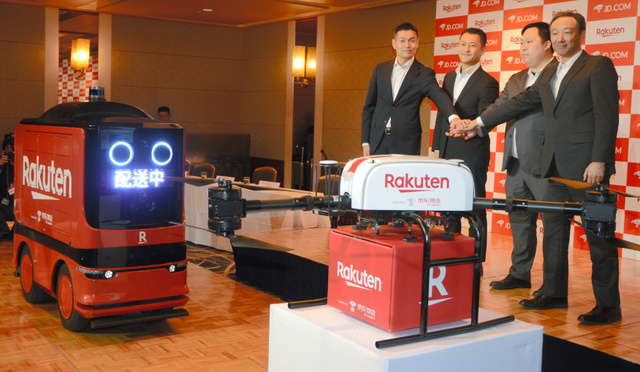 人民网东京2月22日电 据《朝日新闻》网站报道,日本乐天公司21日宣布,将与中国大型电商平台京东集团于无人配送服务领域开展合作。据悉,乐天公司将利用京东集团无人机及地面配送机器人,将在网站上下单购买的商品派送至顾客手中。