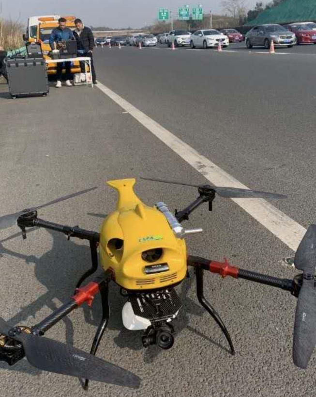 点评:警用航拍最重要的作用是可远距离持续性的侦查拍摄,如果续航时间短则无法持续性、高效率的工作,尤其是如果搭载空中喊话器传统的电动多旋翼无人机无法长时间持续飞行,从而无法长时间控制现场疏散交通。中科灵动油电混合无人机拥有抗风能力强、续航时间长、载荷大等优势正好满足高速公路长距离长航时拍摄记录。同时,燃油的加注不仅方便快捷而且还省去了携带大量电池和为电池充电的不便的问题,起到了快速应急响应的效果。