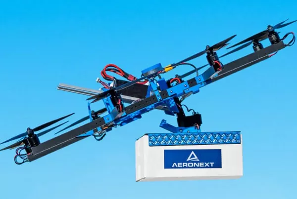 Aeronext将与农业机器企业小桥工业展开业务合作。Aeronext开发出一种无人机,螺旋桨部分与货物及摄像头配备部位的结构分离,在飞行时货物等不会晃动。小桥工业则发挥产业用机械的经验,负责面向量产的设计和制造。