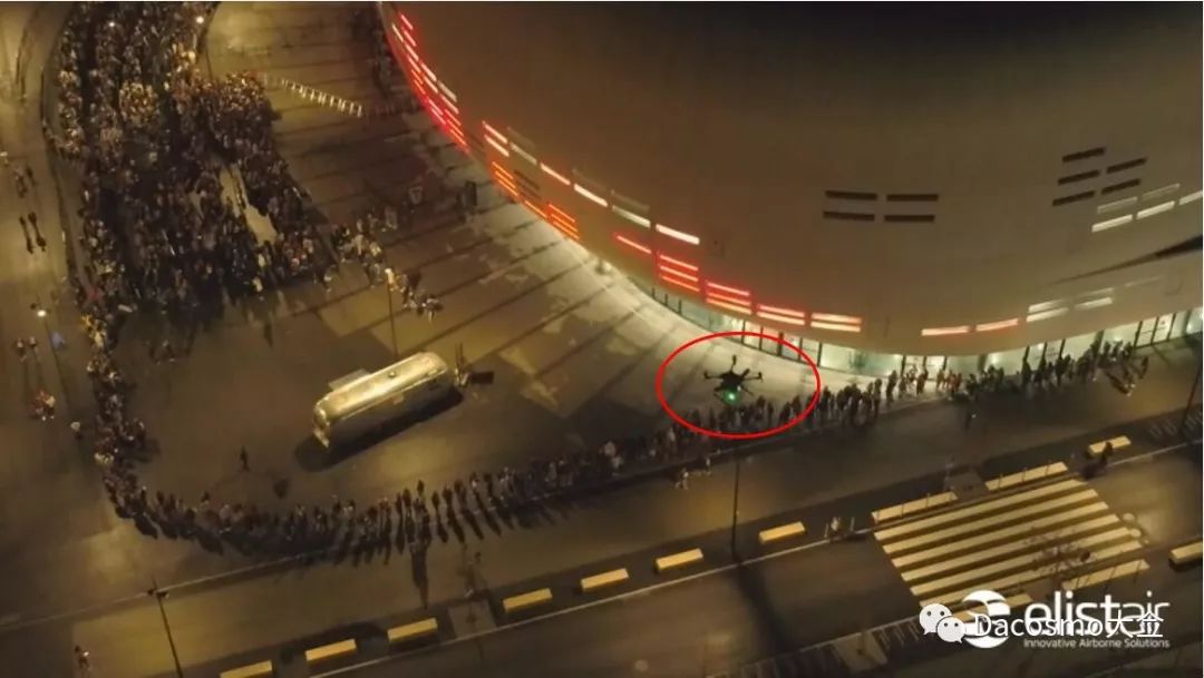 因为elistair Ligh-T系留基站的地面供电能力,大疆经纬M200无人机得以在演唱会前后全程都在剧院上空持续飞行,期间不需更换电池,供安保小组对剧院周边半径1.5公里的区域保持持续的监视,还协助市警察缓解了交通拥堵。