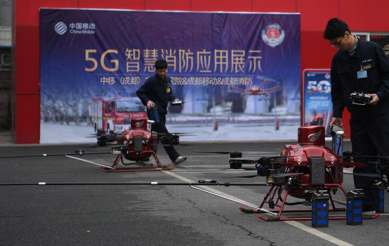 2月24日,在移动5G网络和无人机的配合下,成都市消防救援支队举行首次5G无人机灭火演练。