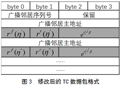 图3展示了修改后的TC消息格式,灰色标注的是修改的部分。修改原有字段空间,用于存放前向接收比、反向接收比以及速度加权的ETX 的分子部分。修改后的TC消息与原始TC消息大小一致,没有增加额外的字节。