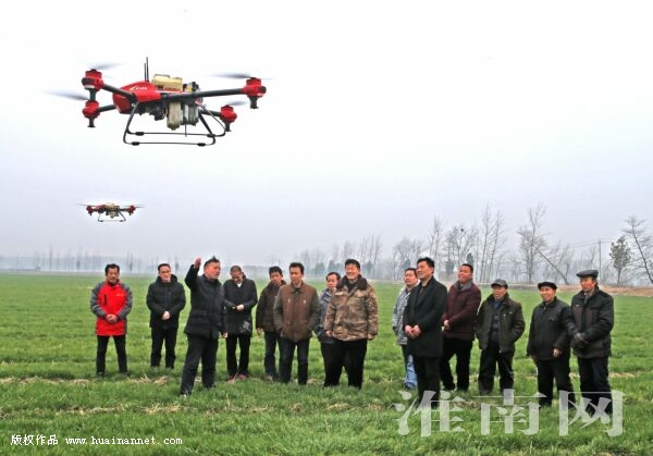 2月26日,淮南凤台怀彪农机服务专业合作社在向无人机“飞手”传授植保无人机的使用方法。早春时节,正是小麦的返青期,淮南市各地农民抓住农时,积极做好麦田管理工作,利用无人机飞防控制小麦病虫害的发生,确保今年小麦丰产丰收。