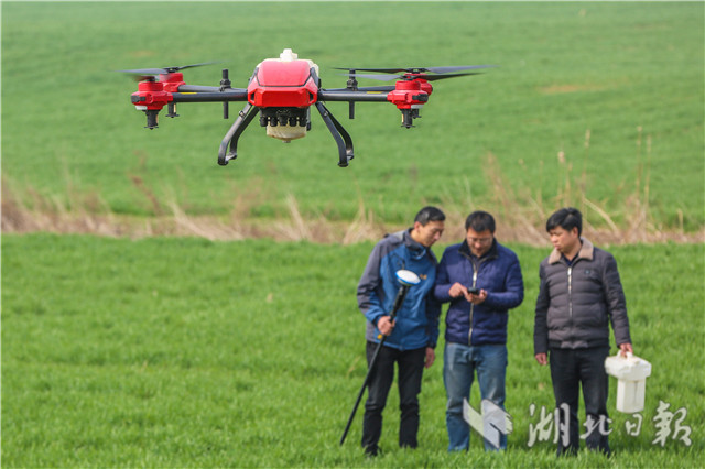 无人机教员为襄阳市高新区米庄镇为村民做飞行示范(无人机拍摄)。