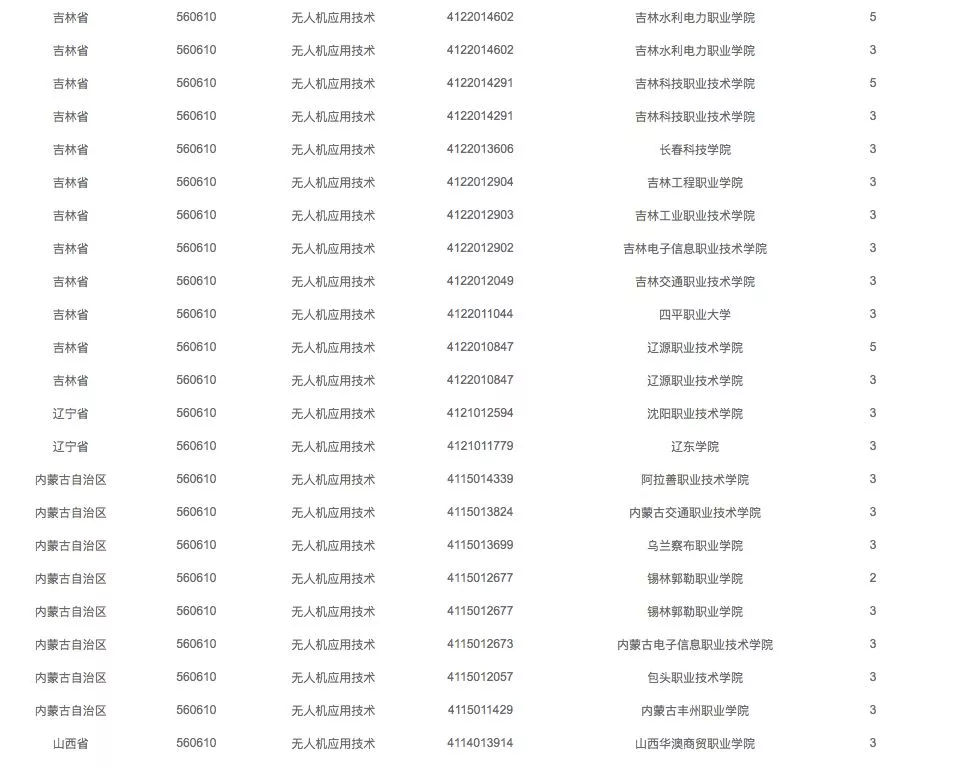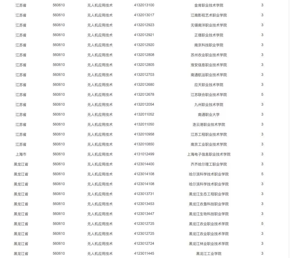 如前文所说,2015年教育部公布新增“无人机应用技术”专业(专业代码560610)。2017年工信部发布《关于促进和规范民用无人机制造业发展的指导意见》,明确指出支持有条件的普通高校与职业院校设立无人机专业。2019年人社部拟发布15个新职业,无人机驾驶员位列其中。近几年,国家还鼓励大中专院校进行 “双创“、”智能制造“、“工业4.0”,这些国家政策的出台,无一不向各个院校发出开设无人机专业的信号。