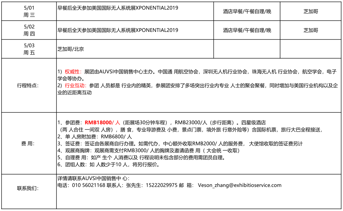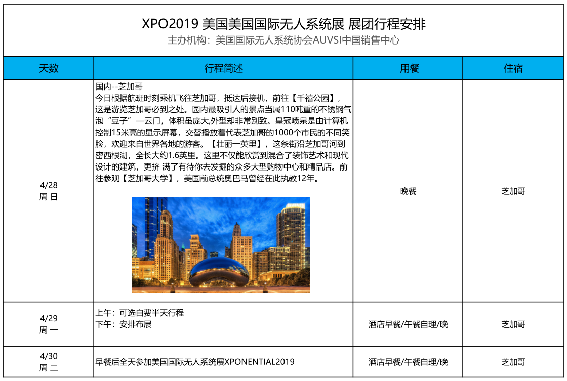 9.XPO2019 美国美国国际无人系统展 展团行程安排出炉
