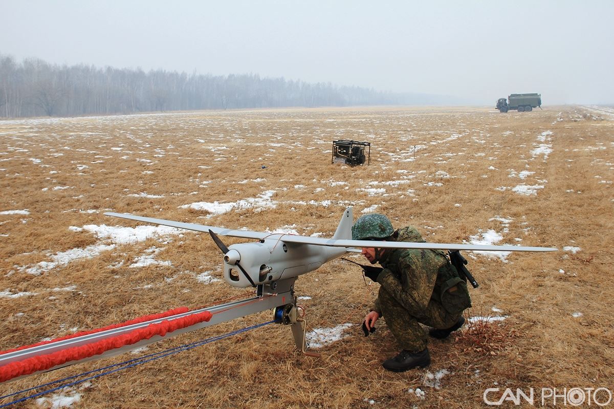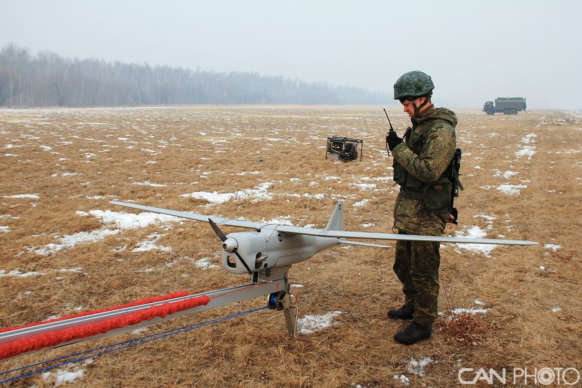 在俄罗斯哈巴罗夫斯克地区,BBO的电子战部队使用Orlan-10无人机进行演习。