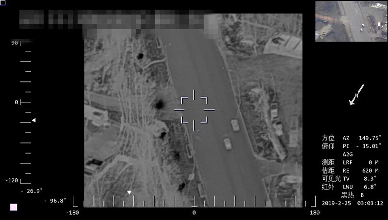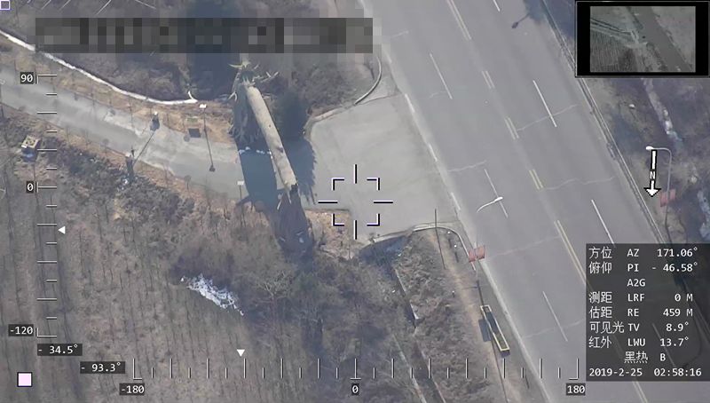 同一区域使用CW-30D大鹏搭载双光吊舱,根据任务需求切换成红外热成像镜头,顺着管道进行巡线,供暖泄漏的地方在屏幕上高亮点显示出来。