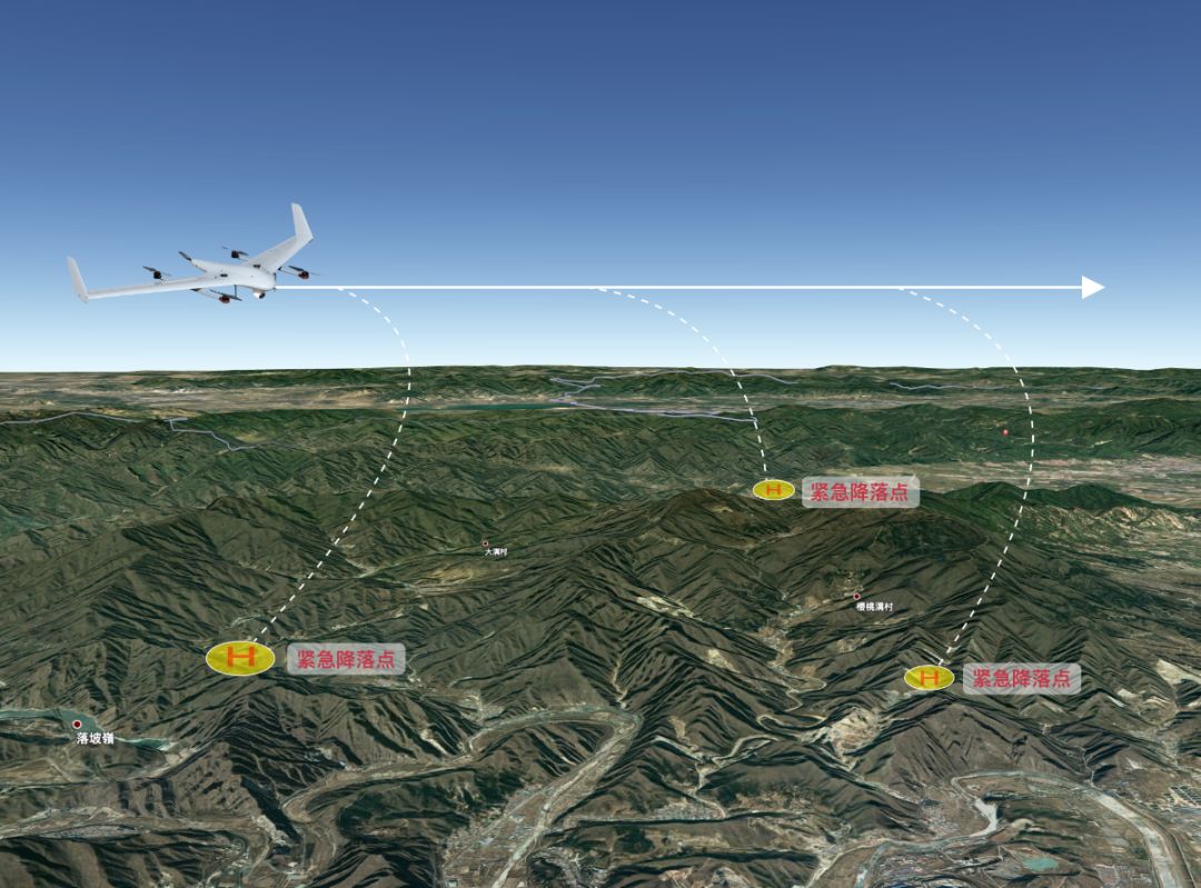 飞机巡检过程中,会提前在空旷地方、楼顶等适合之处,预先设置紧急降落点