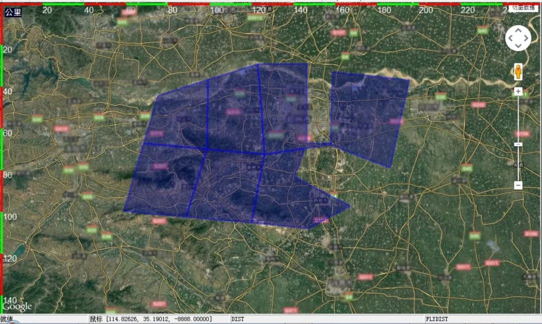 某单位使用3V在某市获批空域示意图,面积达近6000平方公里范围
