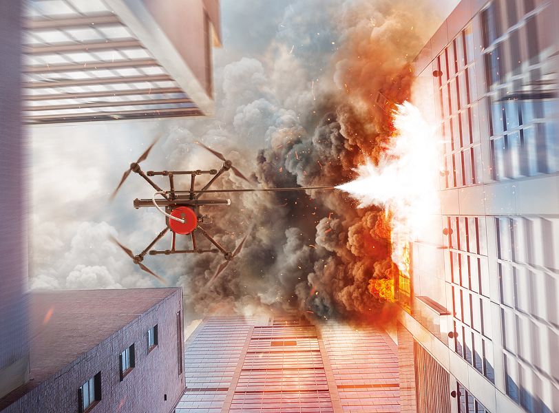 ▲无人机城市灭火应用场景