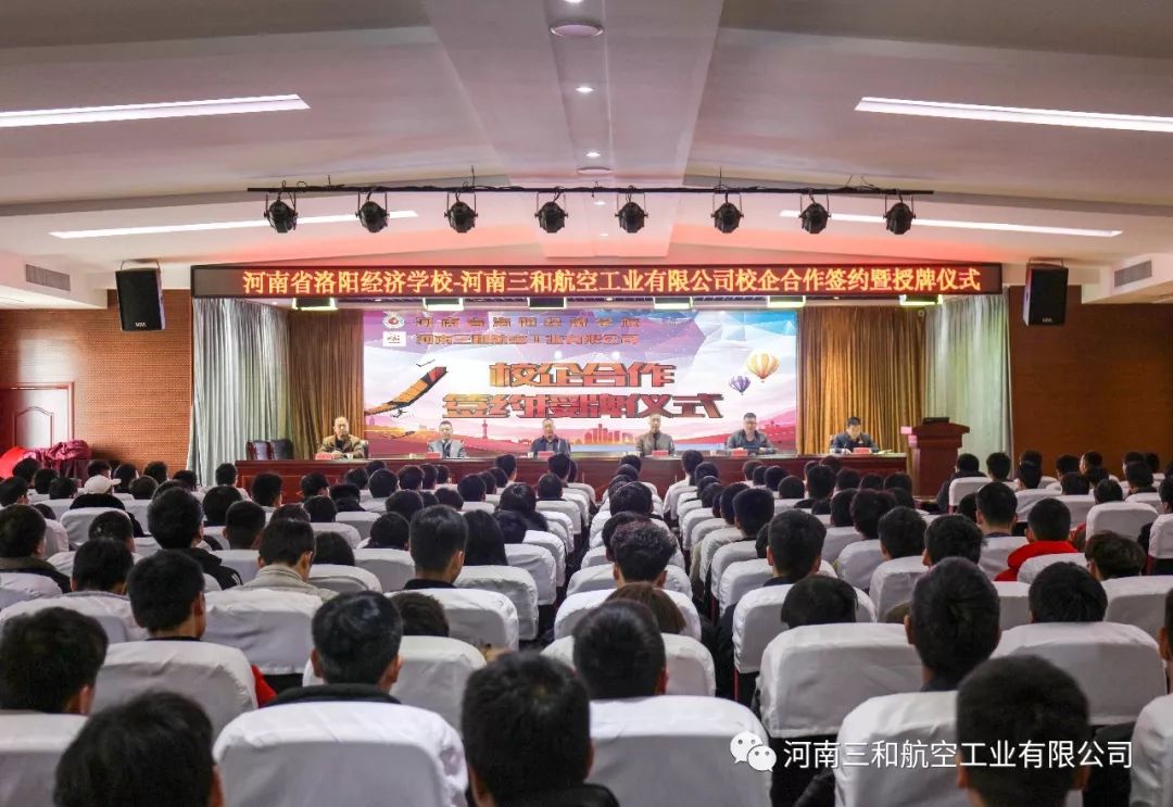 2019年3月8日,我公司与河南省洛阳经济学校共建航空运动专业签约授牌暨赠送旋翼机仪式在洛阳经济学校综合报告厅举行。