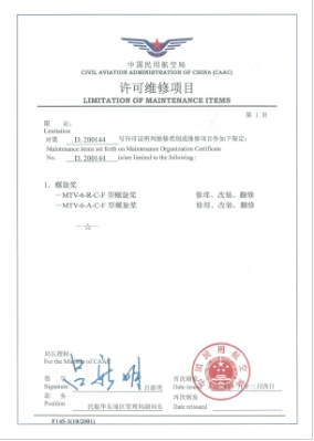 维修许可证/许可维修项目(图片来源:卓尔航空科技)